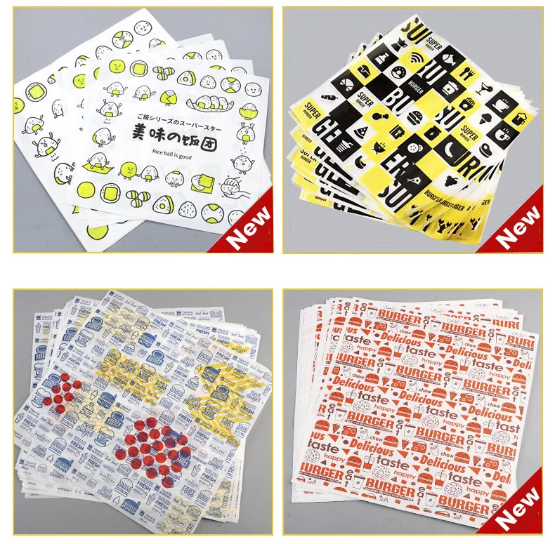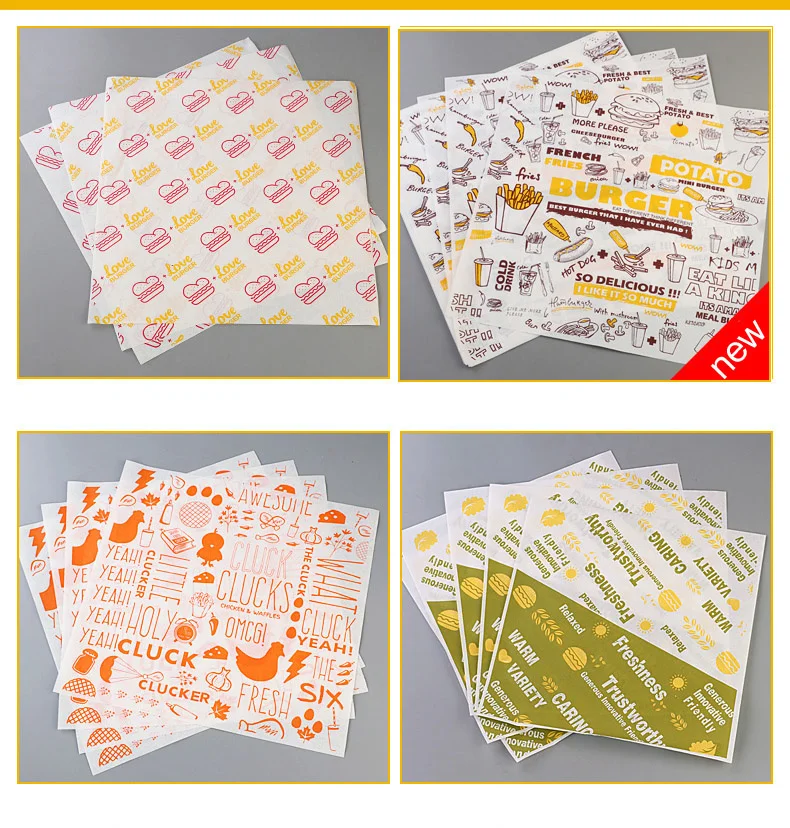 100 piezas de papel encerado resistente al aceite para envolver alimentos, pan, sándwiches, hamburguesas, papas fritas. Herramientas de horneado y envoltura de comida rápida, suministro personalizado.