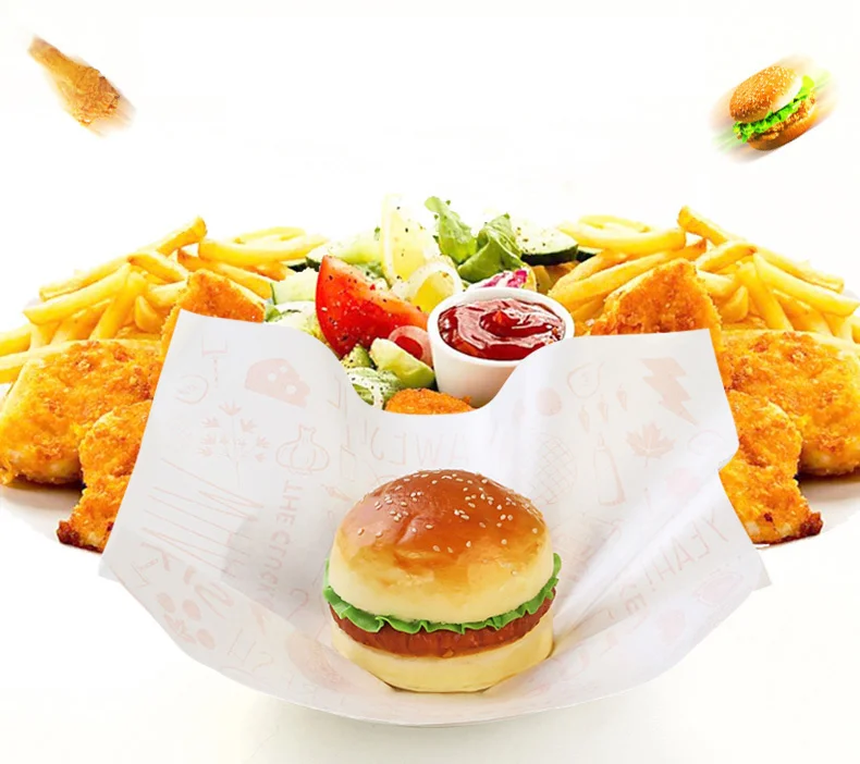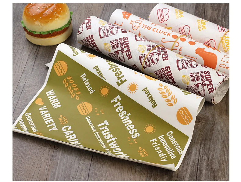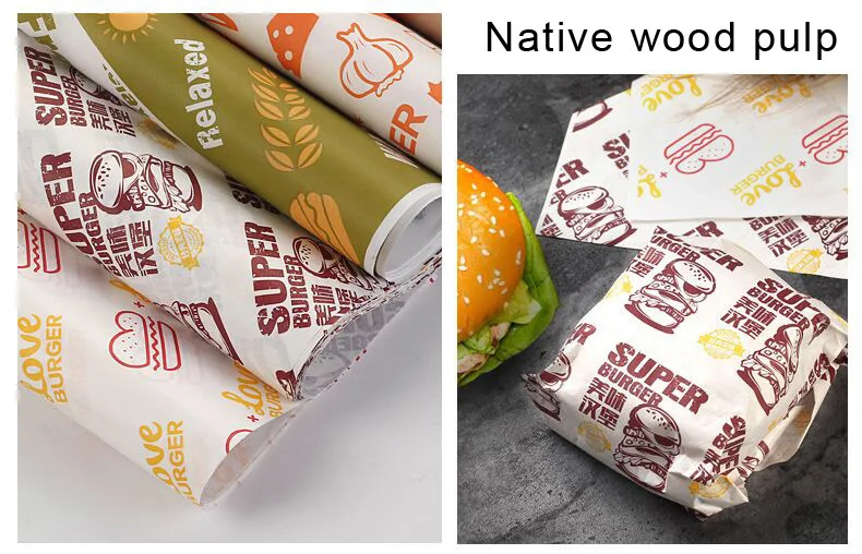 Papel encerado a prueba de aceite para alimentos, envoltorio de papel para pan, sándwich, hamburguesa, patatas fritas, herramientas para hornear, suministro personalizado de comida rápida, 100 Uds.