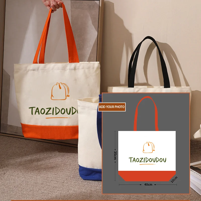 20/50 unids/lote, bolso de empalme personalizado con foto/texto, bolso de mano de lona para mujer, bolsas de compras informales para ir al trabajo, 40x35x10cm