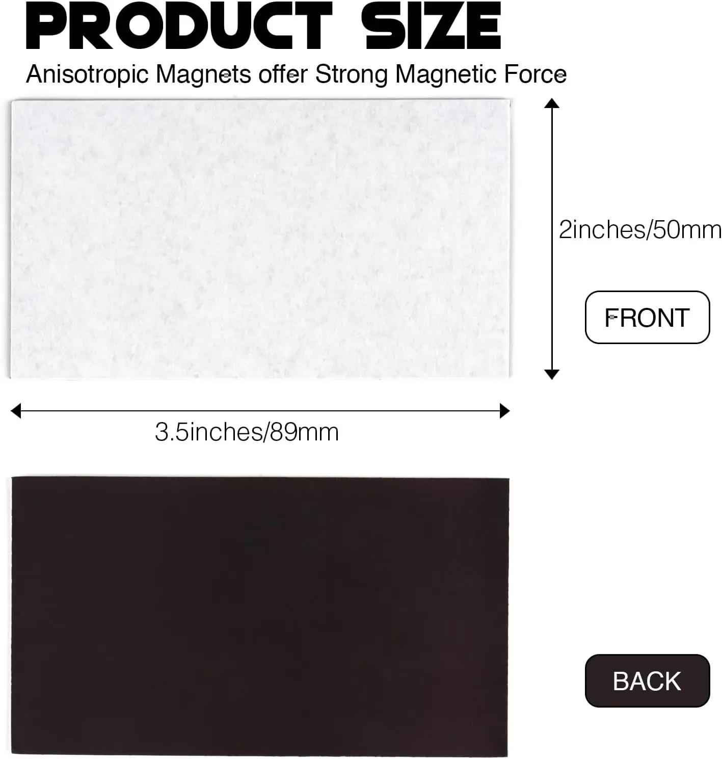 Con unas dimensiones de 2X3,5 pulgadas, estos imanes son perfectos para fijar a diversas superficies y materiales.