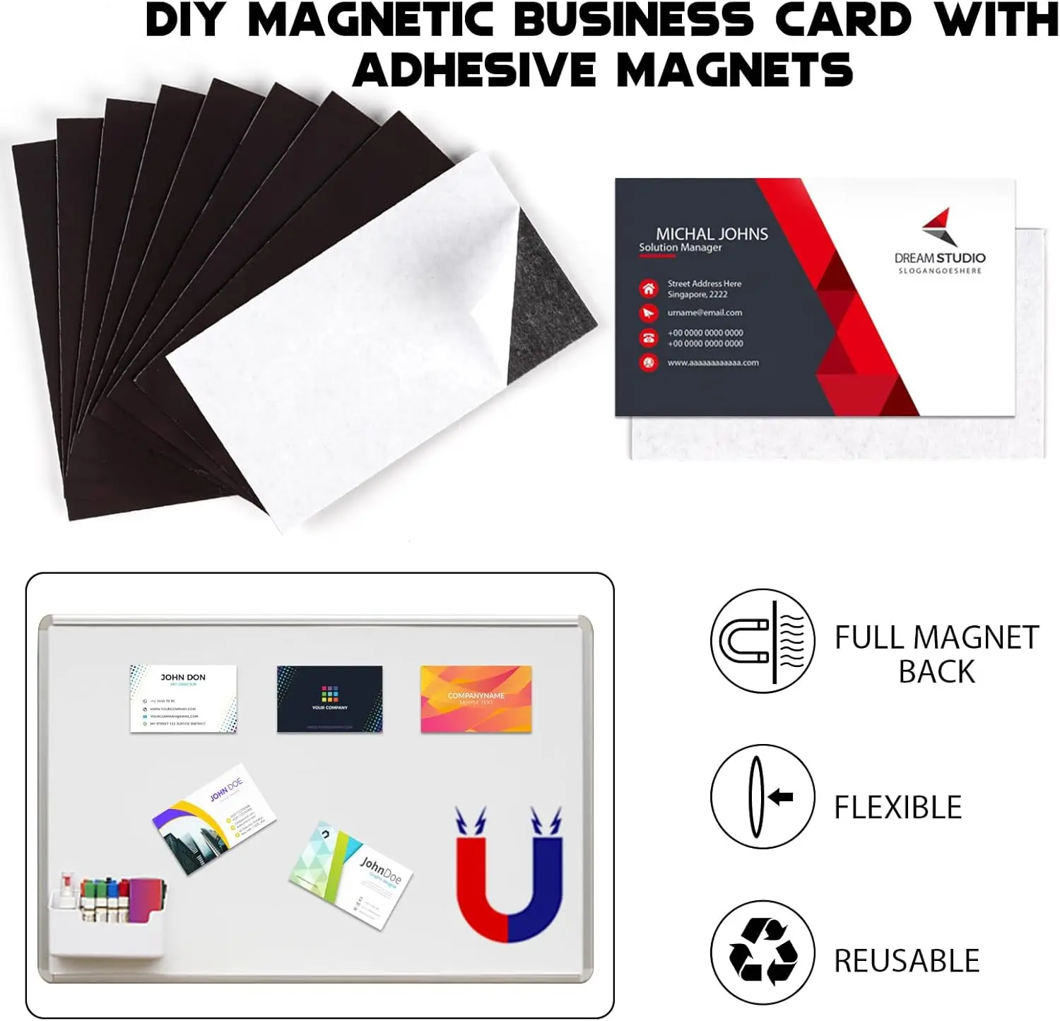 Imán para tarjetas de visita de 2×3,5 pulgadas, 20 Uds., cinta autoadhesiva para pelar y pegar, tarjetas de visita ordinarias en propiedades magnéticas