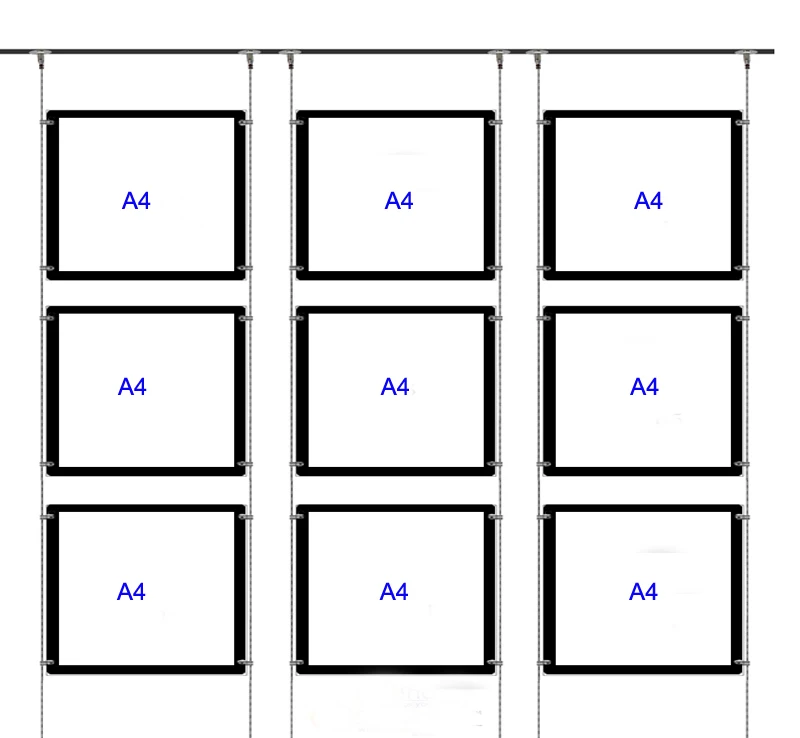 (3 unidades/columna) Mruiks A4 sistemas de exhibición para colgar en varillas y cables de un solo lado, kits de exhibición de ventanas LED, pantallas LED de bienes raíces