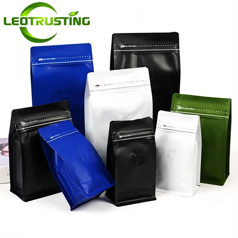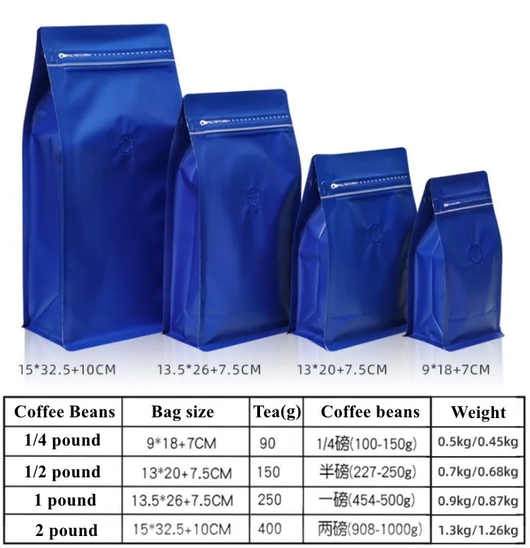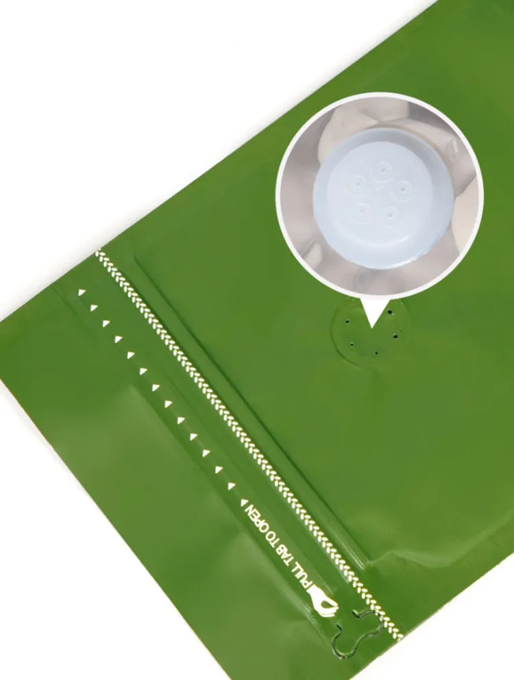 50 Uds 1/4 ~ 2 libras 3D bolsa de válvula Ziplock de papel de aluminio de pie DIY Matcha cacao granos de café Snack bolsas de almacenamiento de sellado térmico