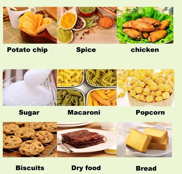 Ampliamente utilizado en bocadillos, galletas, nueces, frutas, alimentos congelados, té y granos de café.