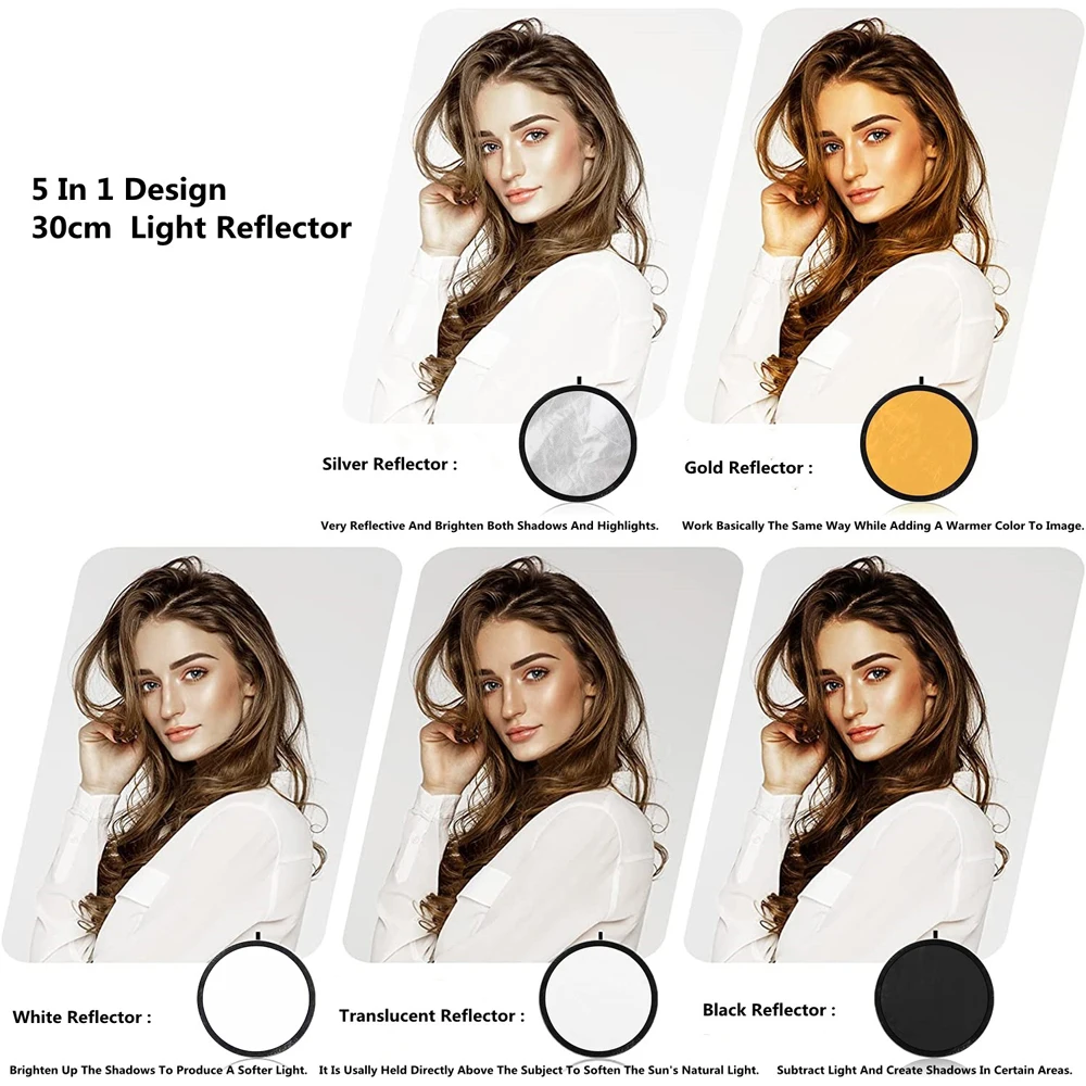Reflector redondo 5 en 1 para fotografía, difusor de luz para estudio fotográfico, accesorio portátil, 110/80/60/30CM, 12 pulgadas