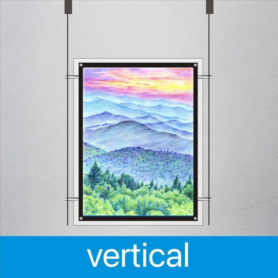 * Esta Pantalla de cable esPantalla lateral única, Está suspendido entre 2 pulseras en la pared o ventanas, muestra tu póster o gráficos en 1 lado.