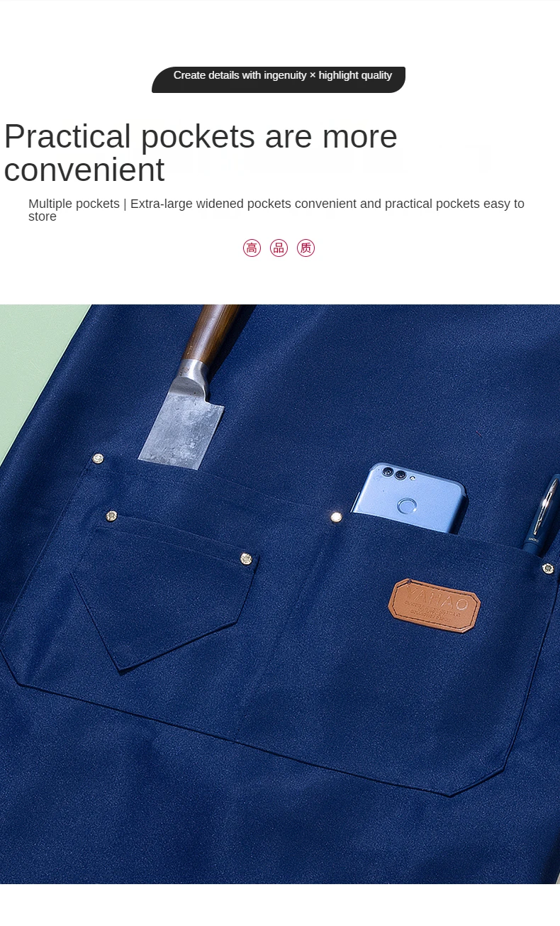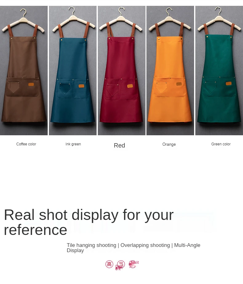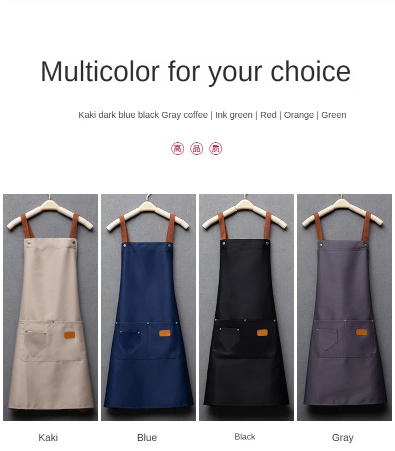 Delantales de cocina impermeables con logotipo impreso bordado personalizado, ropa para hornear Chef en casa con bolsillos, babero para adultos, riñonera