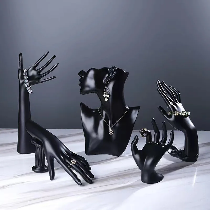 Exhibición de joyería a la moda, modelo de mano, tobillera, reloj, pulsera, soporte de exhibición, decoración de bocetos, organizador de anillos de fotos artísticas