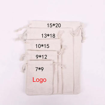 100 unids/lote bolsas de algodón natural 7×9 9×12 10×15 13×18 15x20cm bolsas de regalo con cordón bolsas de almacenamiento para el hogar bolsa de embalaje logotipo personalizado