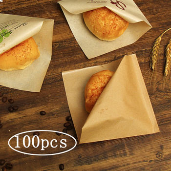 Papel Kraft desechable para envolver comida, bolsa de embalaje de rosquilla a prueba de aceite con forma de triángulo, herramientas para hornear, 100 Uds.