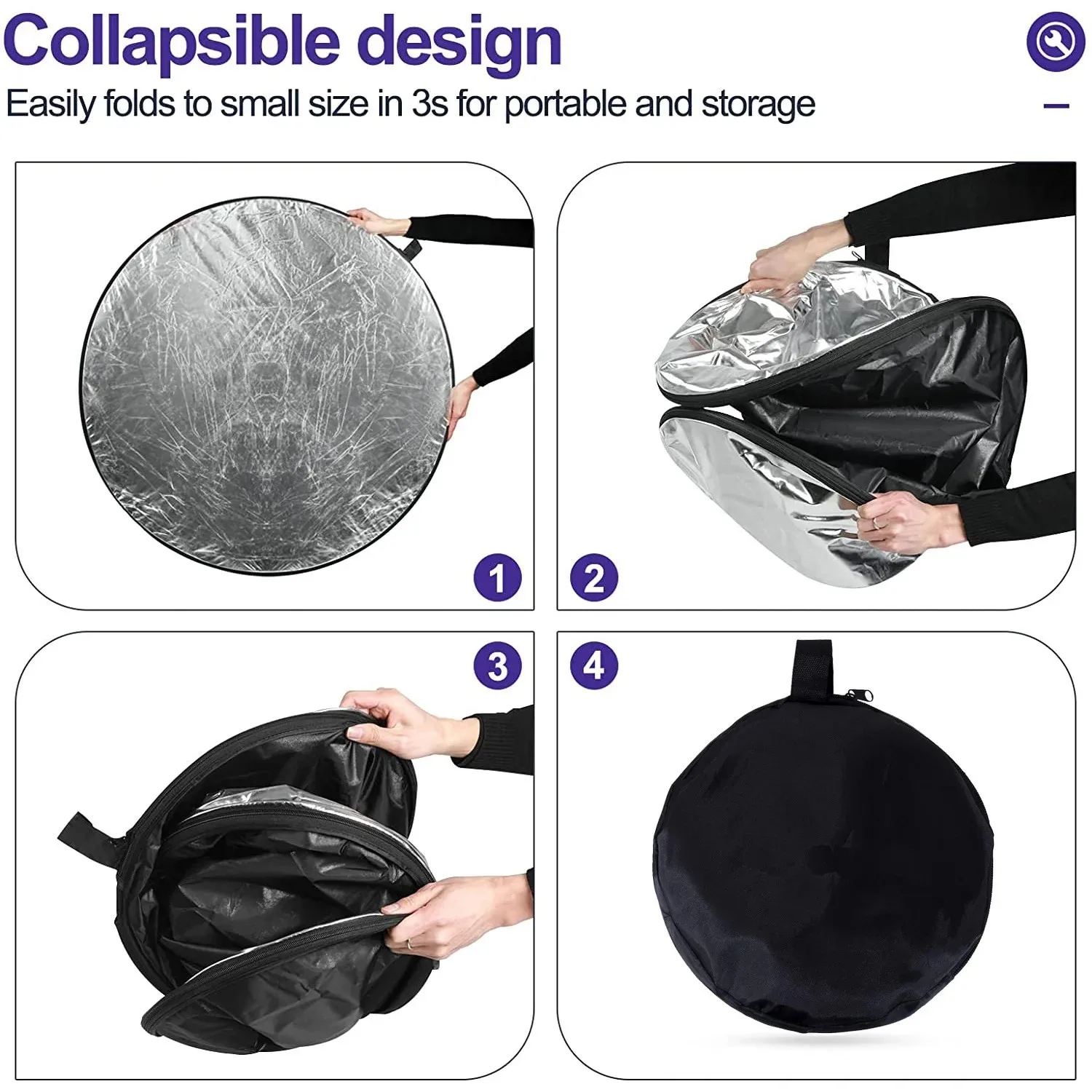 RF01 24 «Reflector 5 en 1 30CM 60CM 80CM 110CM plata blanco oro portátil plegable luz suave fotografía redonda para estudio 2 en 1