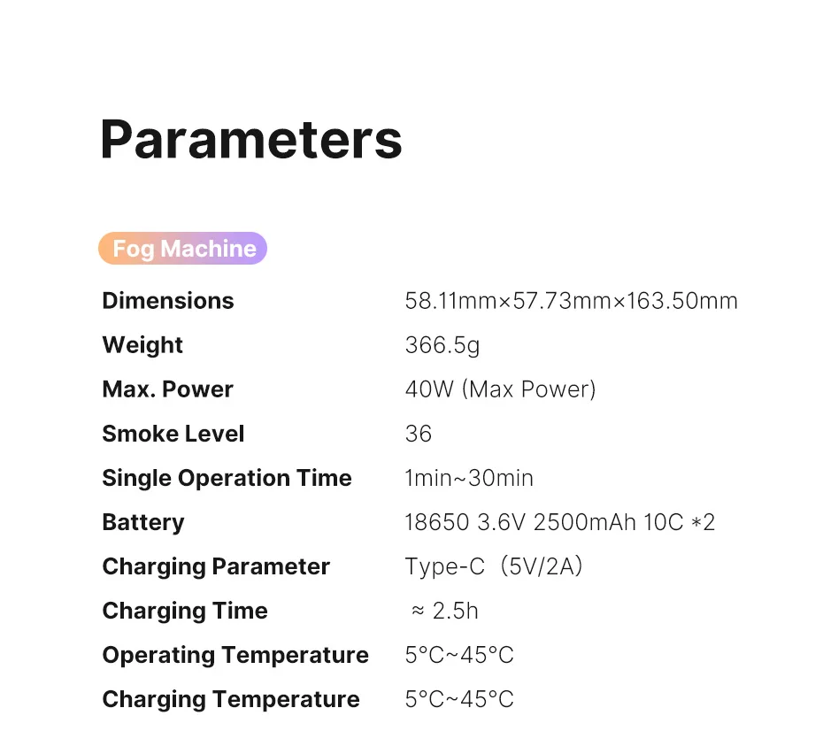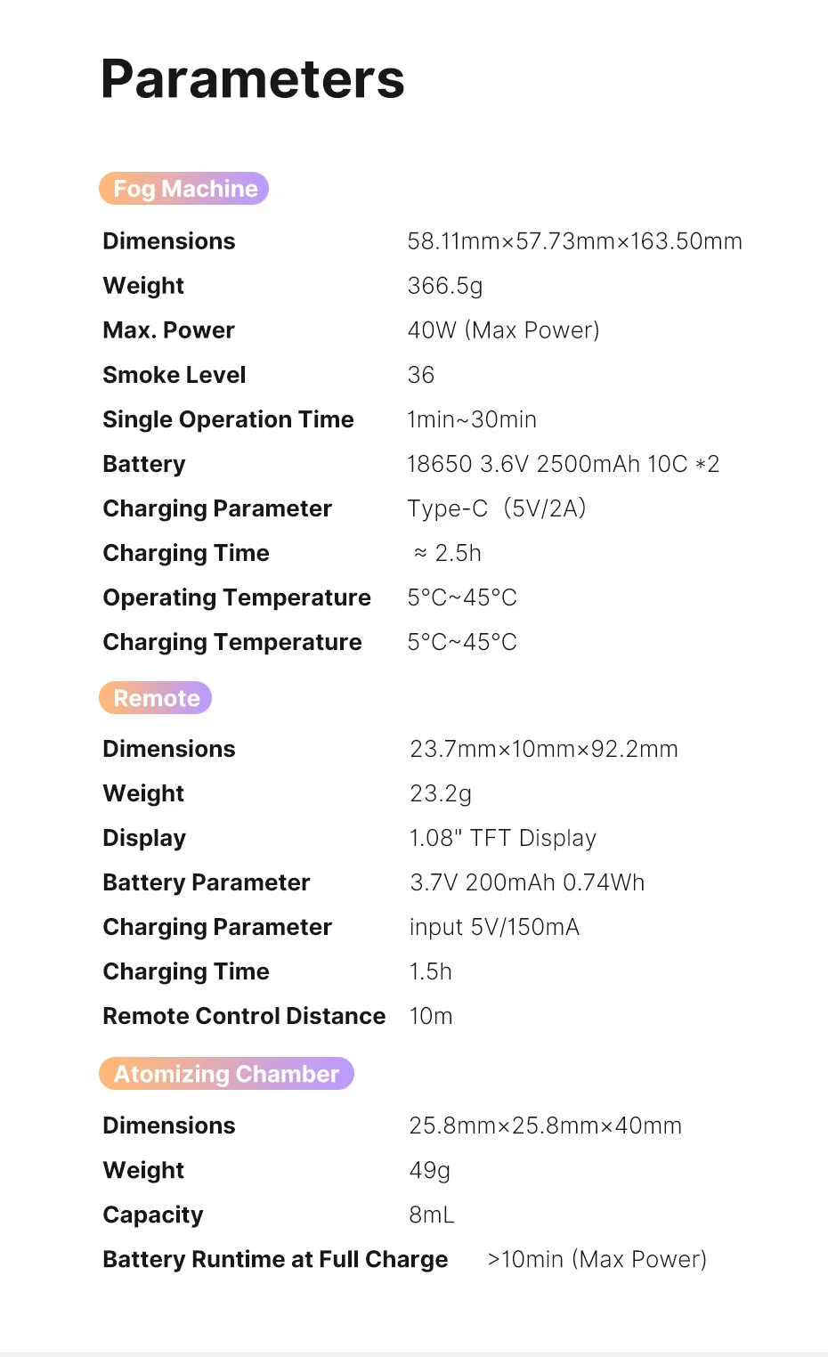2. Intensidad y velocidad de niebla controlables: un total de 36 efectos de niebla en diferentes intensidades, a diferentes velocidades para que usted elija.