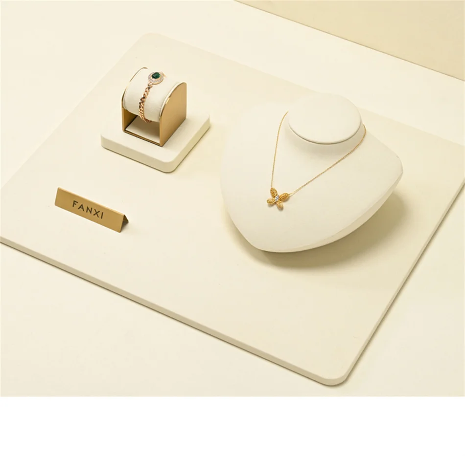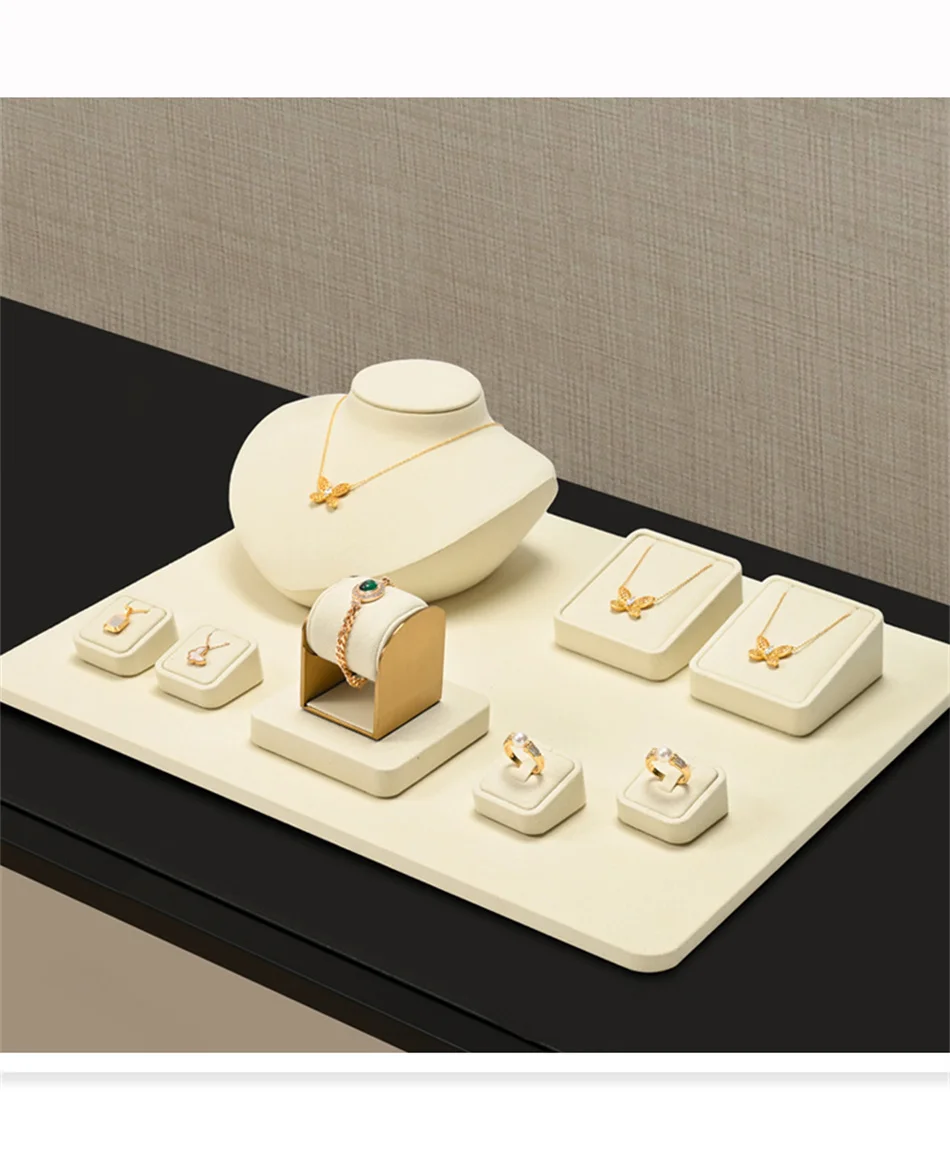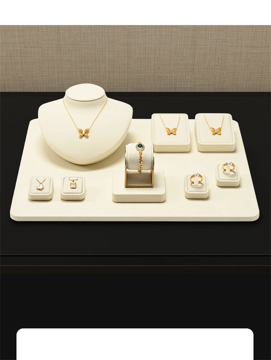 Accesorio de exhibición de joyería WoodTen Beige para anillos, pulseras, retrato, collares de pecho, exposición de tienda, soporte de exhibición de joyería de microfibra
