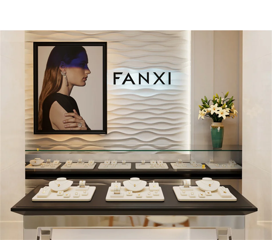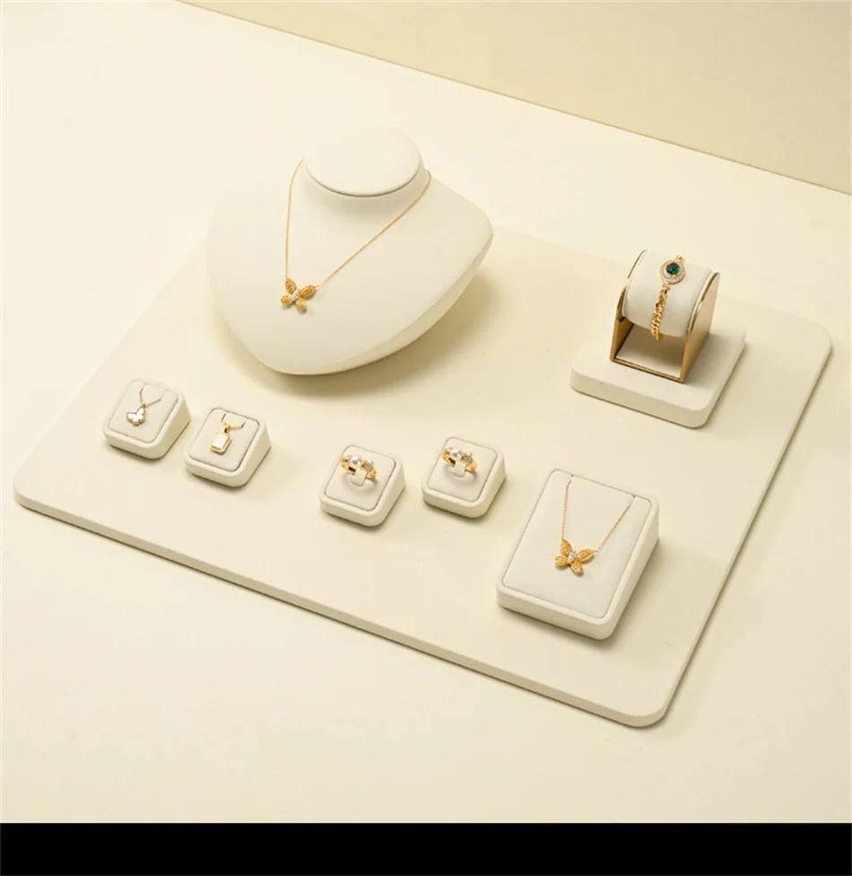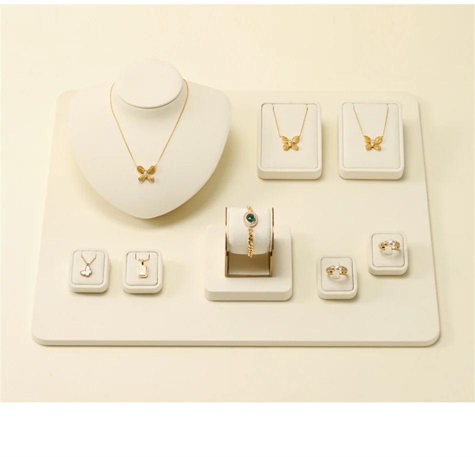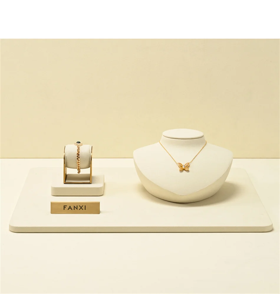 Accesorio de exhibición de joyería WoodTen Beige para anillos, pulseras, retrato, collares de pecho, exposición de tienda, soporte de exhibición de joyería de microfibra
