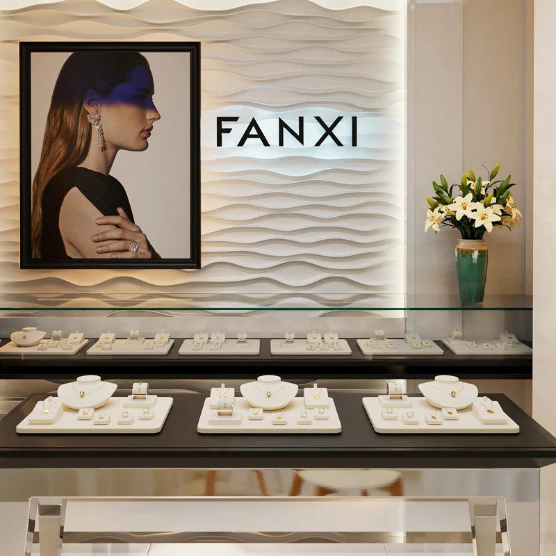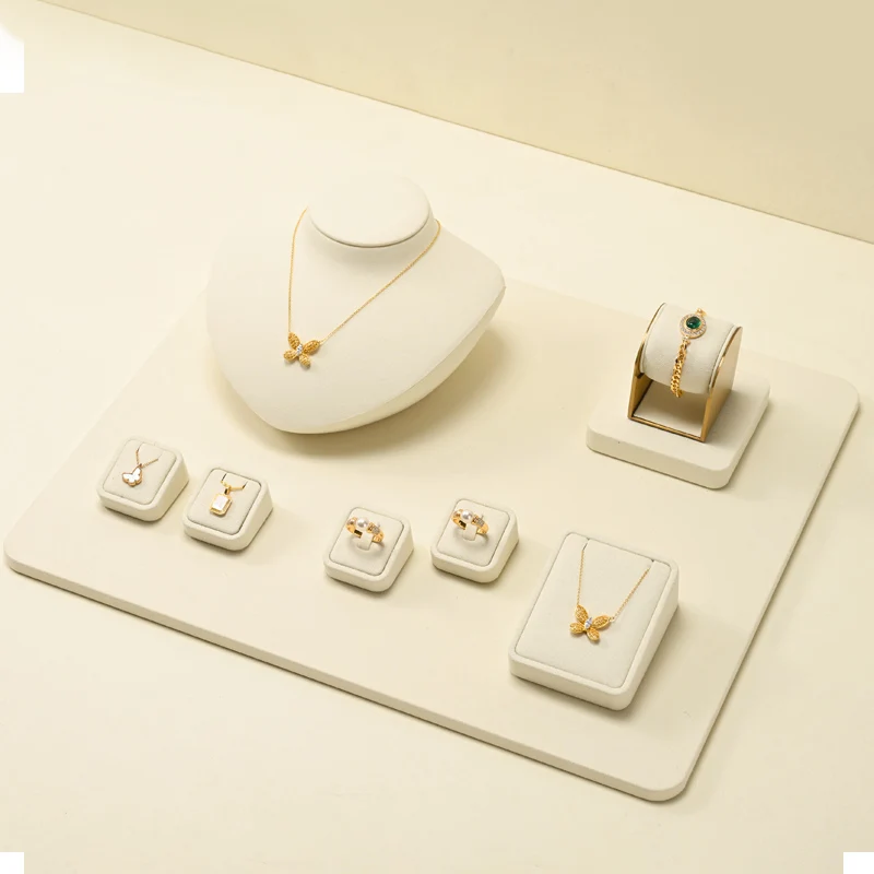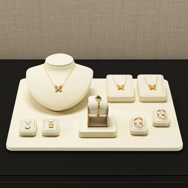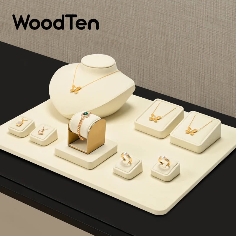 Accesorio de exhibición de joyería WoodTen Beige para anillos, pulseras, retrato, collares de pecho, exposición de tienda, soporte de exhibición de joyería de microfibra